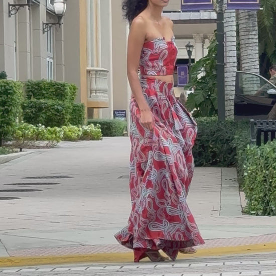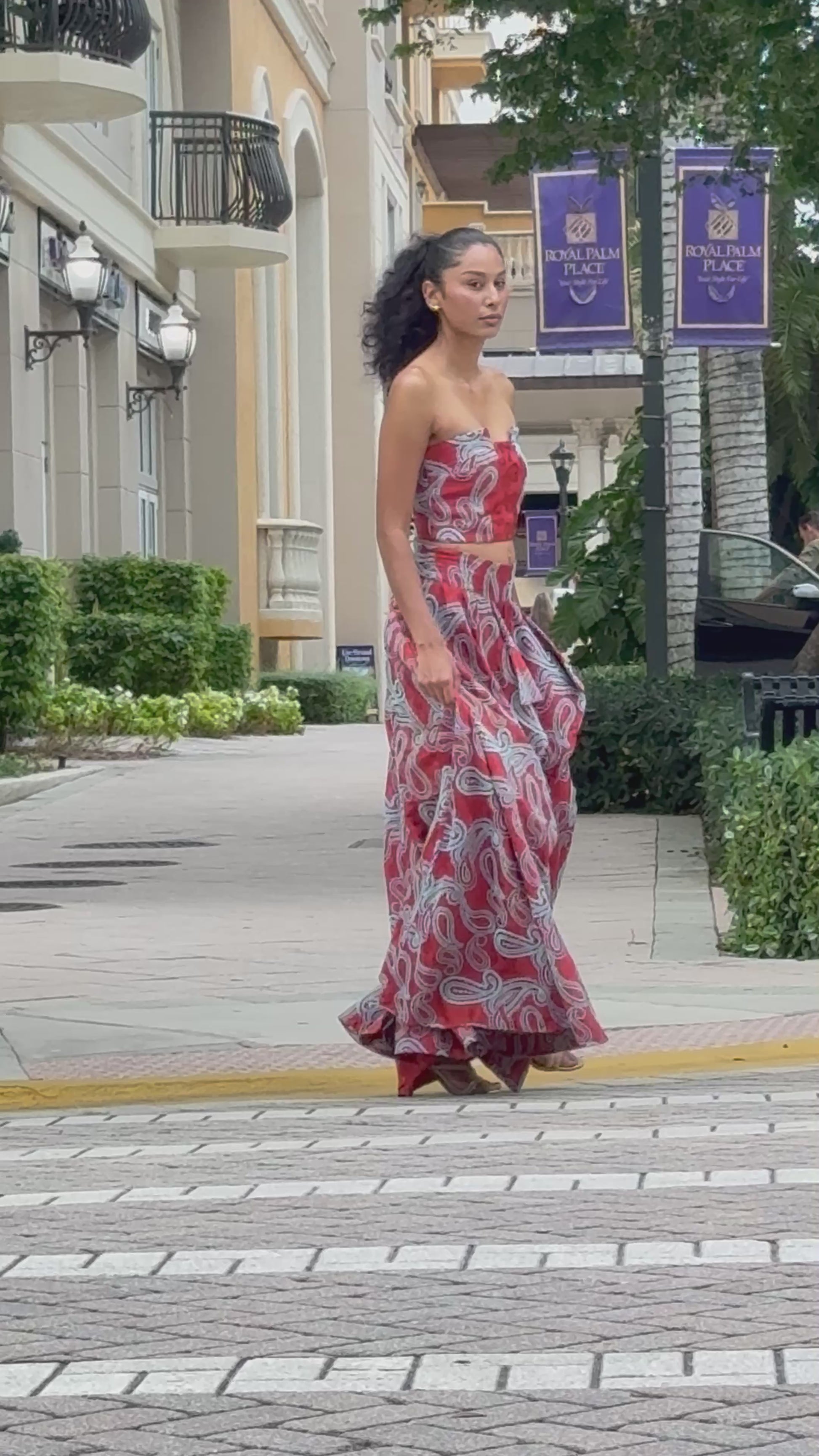It’s a sophisticated yet bohemian look — effortlessly chic, ideal for resort evenings, elegant garden events, or a statement daytime outing.